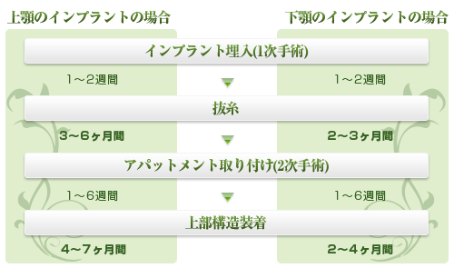 インプラントの治療期間は、主に安静期間に時間を要しています。つまり安静期間により治療期間の差が生じます。